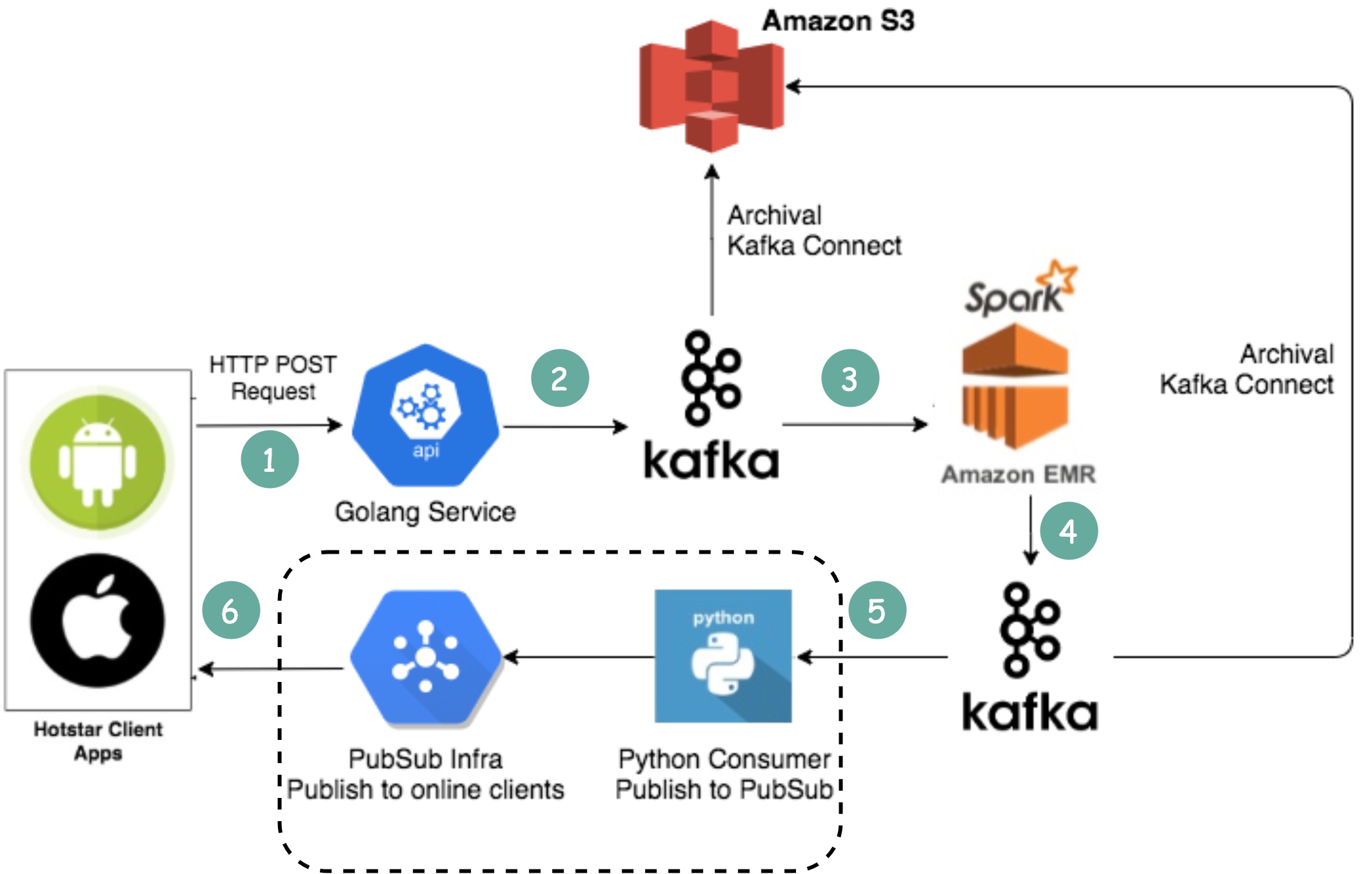 表情符号通过PubSub基础设施实时传递给其他客户。PubSub基础设施非常重要。Hotstar考虑了以下协议:Socketio、NATS、MQTT和gRPC,最终选择了MQTT。